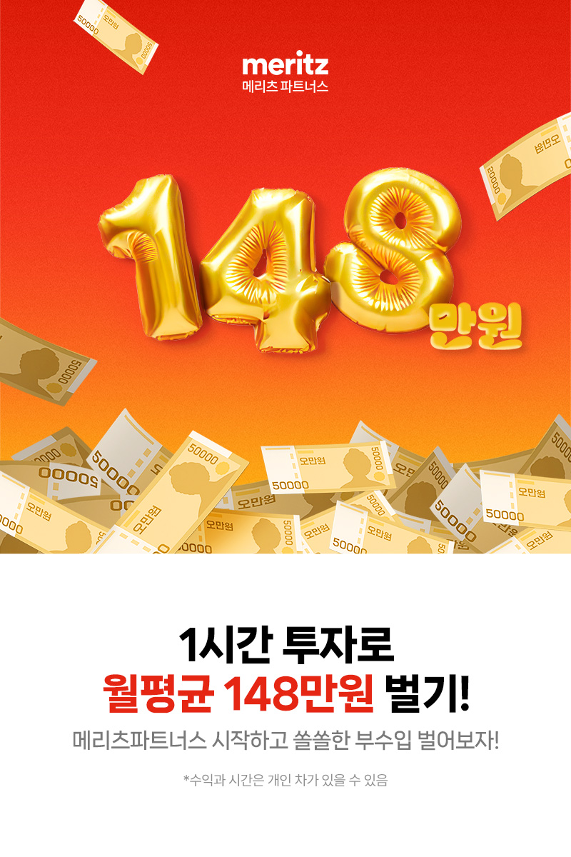 혹시 시간과 장소에 얽매이지 않고 새로운 수입을 만들 방법을 찾고 있나요? 평생직장이라는 말이 무색해진 요즘, 많은 분이 추가 소득을 고민하고 있습니다. 메리츠 파트너스는 이러한 고민을 해결하며 동시에 삶에 도움이 되는 새로운 기회를 제안합니다.