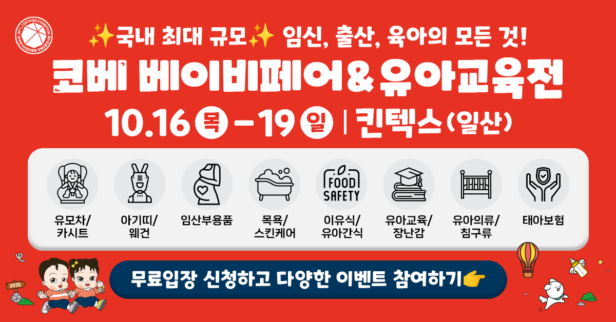 다양한 임신·출산·육아·유아교육 브랜드들을 직접 체험하며 우리 아이에게 가장 적합한 제품을 고르고 싶다면, 킨텍스 코베 베이비페어&유아교육전이 좋은 기회가 됩니다. 구매 전 샘플을 확인하고 저렴하게 상품을 장만하며, 꼭 필요한 육아 정책 정보를 얻을 수 있는 유익한 행사입니다.